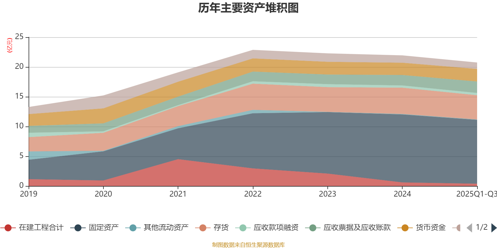 资产重大变化方面,截至2025年三季度末,公司应收票据及应收账款较上年末增加10.34%,占公司总资产比重上升1.34个百分点;在建工程合计较上年末减少37.86%,占公司总资产比重下降0.94个百分点;货币资金较上年末增加2.4%,占公司总资产比重上升0.78个百分点;存货较上年末减少7.95%,占公司总资产比重下降0.53个百分点。