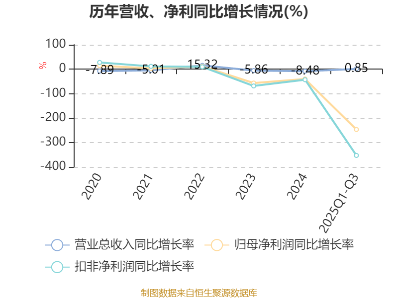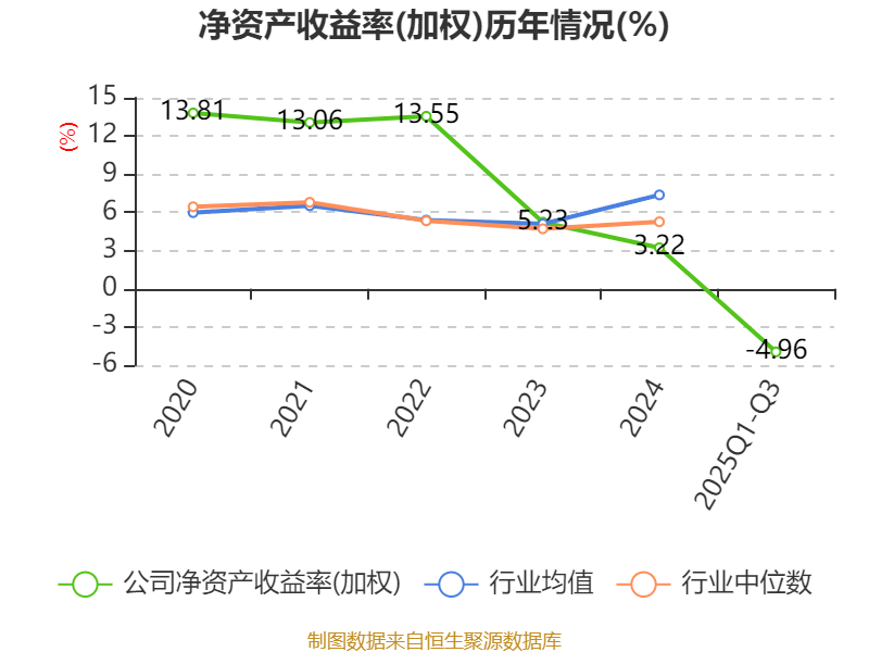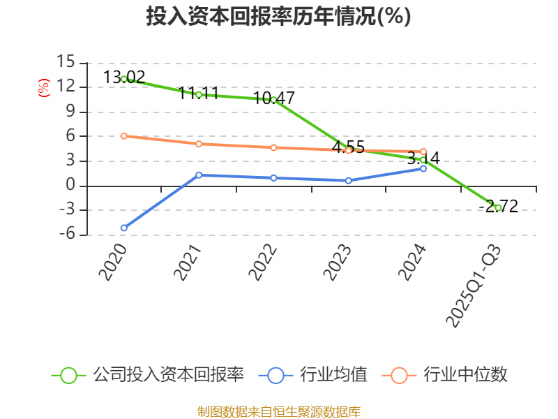 盈利能力方面, 2025年前三季度公司加权平均净资产收益率为-4.96%,同比下降8.14个百分点。公司2025年前三季度投入资本回报率为-2.72%,较上年同期下降5.48个百分点。
