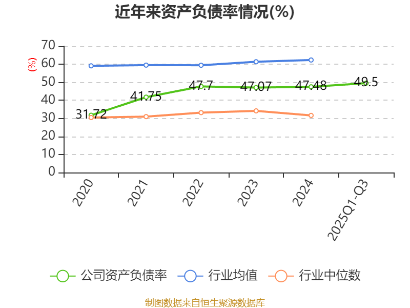 负债重大变化方面,截至2025年三季度末,公司短期借款较上年末增加432.55%,占公司总资产比重上升5.29个百分点;应付票据及应付账款较上年末减少32.71%,占公司总资产比重下降2.93个百分点;一年内到期的非流动负债较上年末减少24.01%,占公司总资产比重下降0.97个百分点;其他应付款(含利息和股利)较上年末增加15.92%,占公司总资产比重上升0.92个百分点。