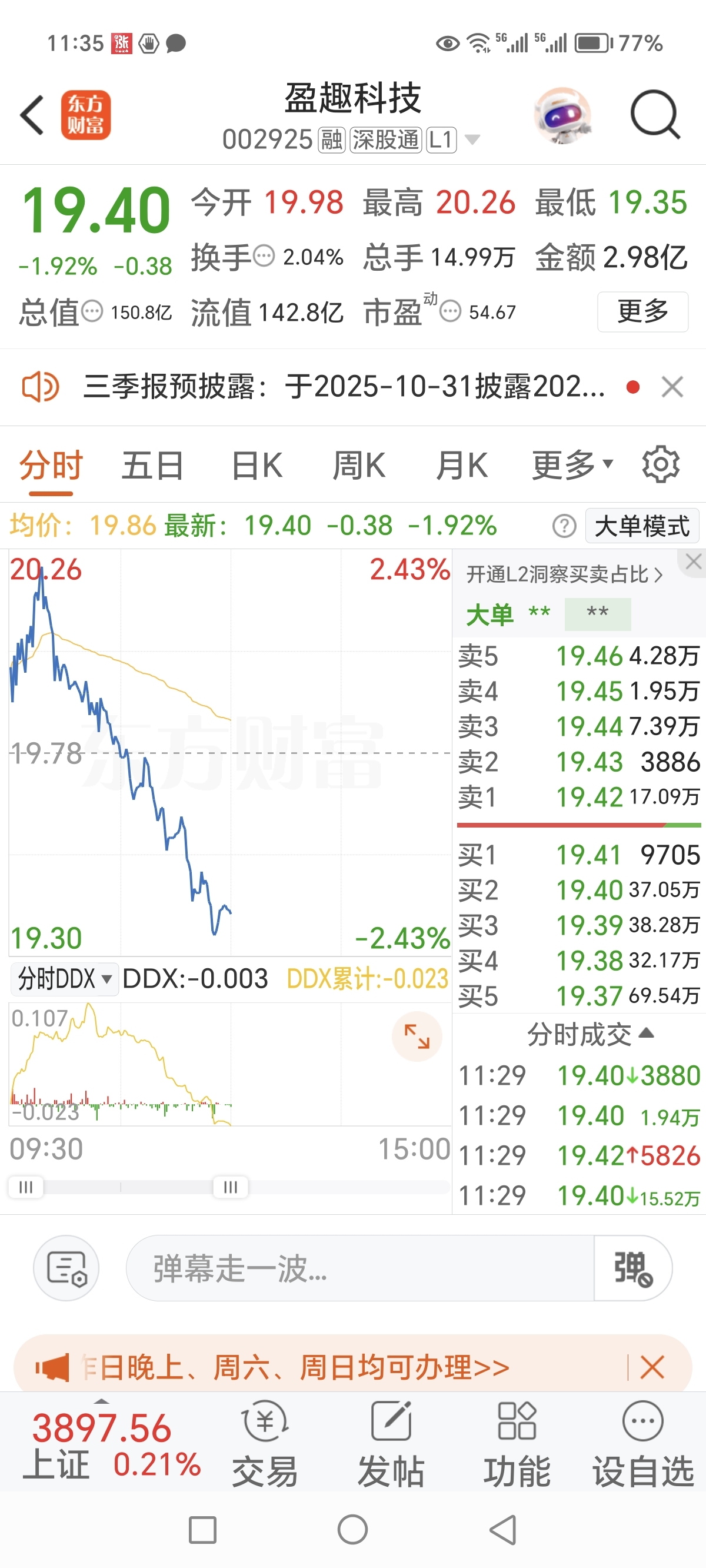 $盈趣科技(SZ002925)$ 今天上午的分时走的是太好看了
