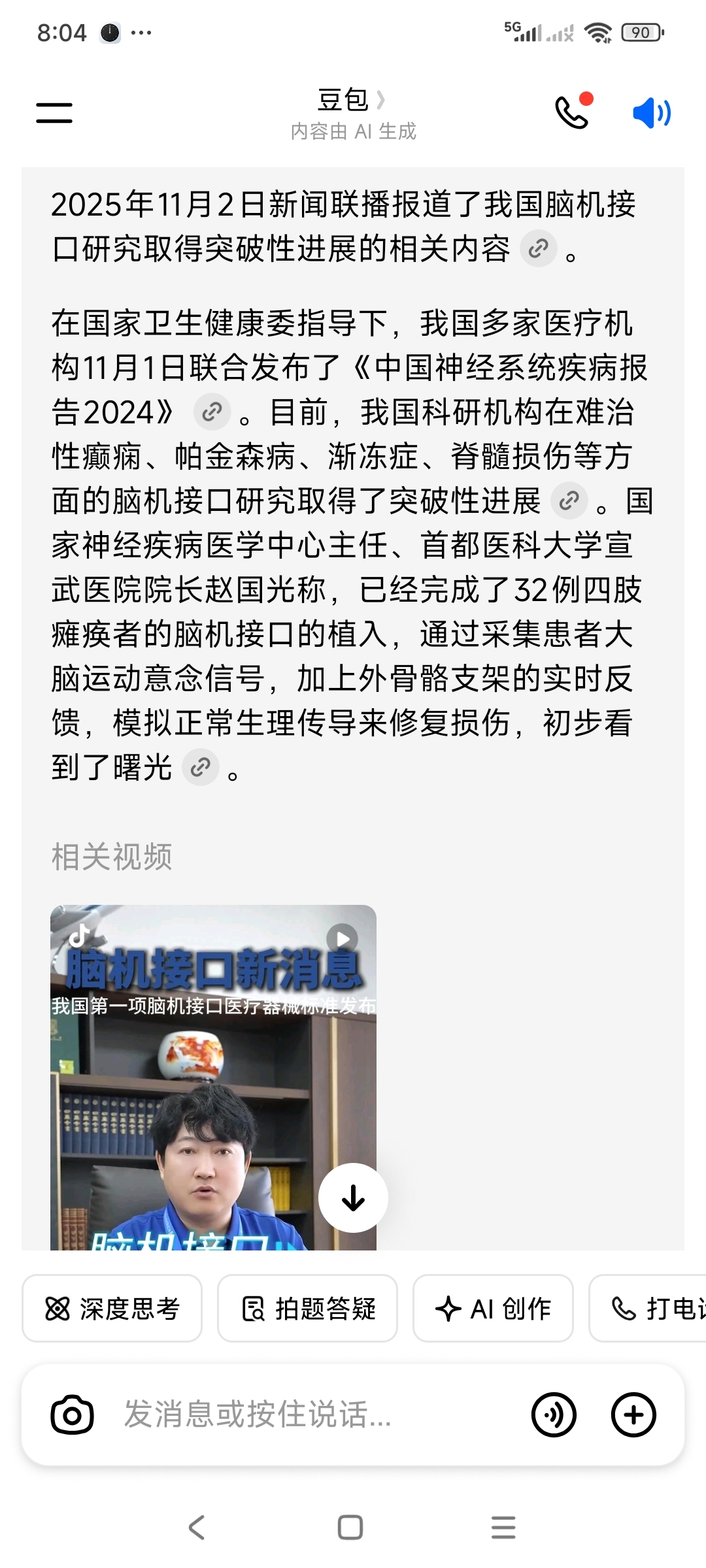 2025年11月2号新闻联播里面说脑机接口中国有突破!祝贺!祝福人类吧!