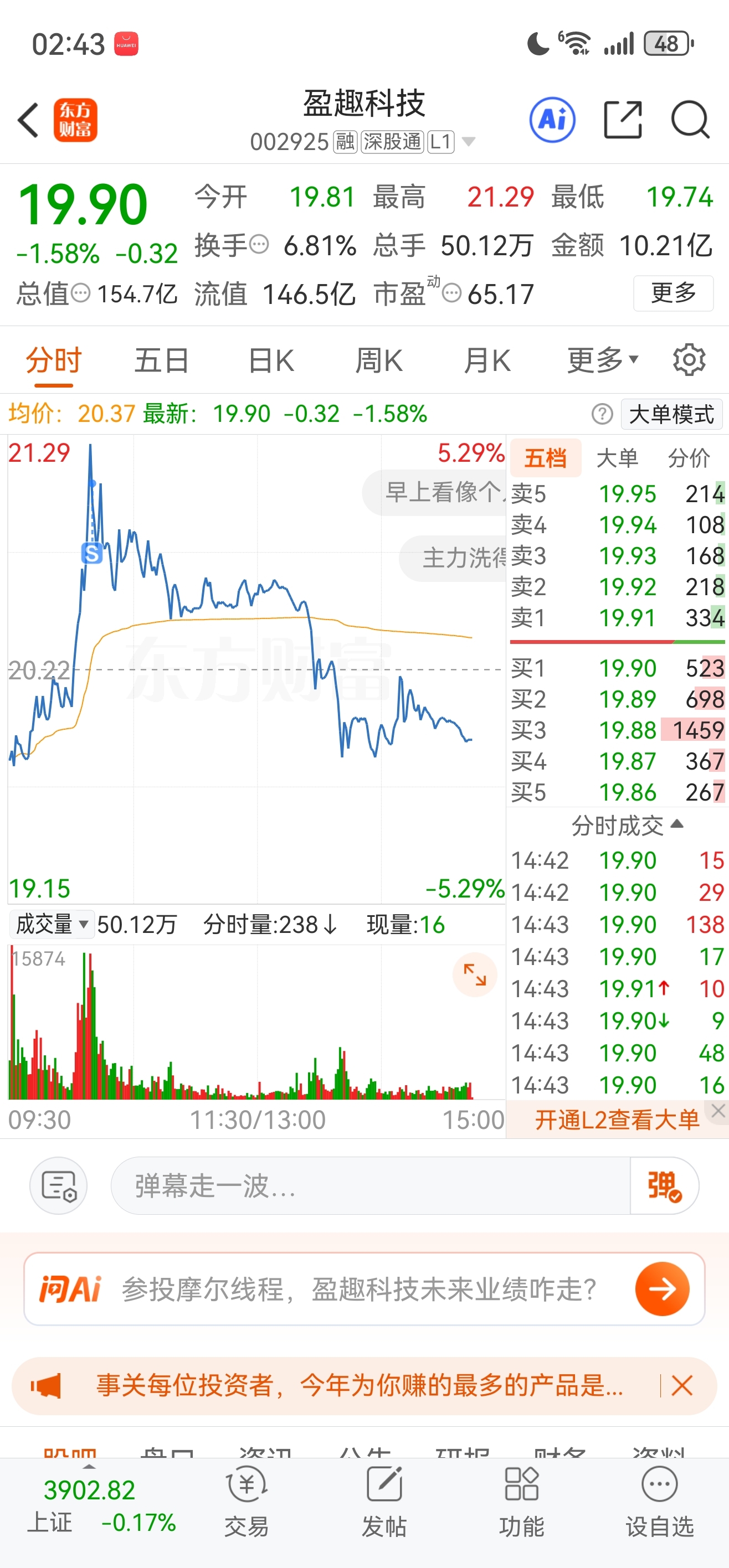 $盈趣科技(SZ002925)$ 今天还可以,主力做的非常好。