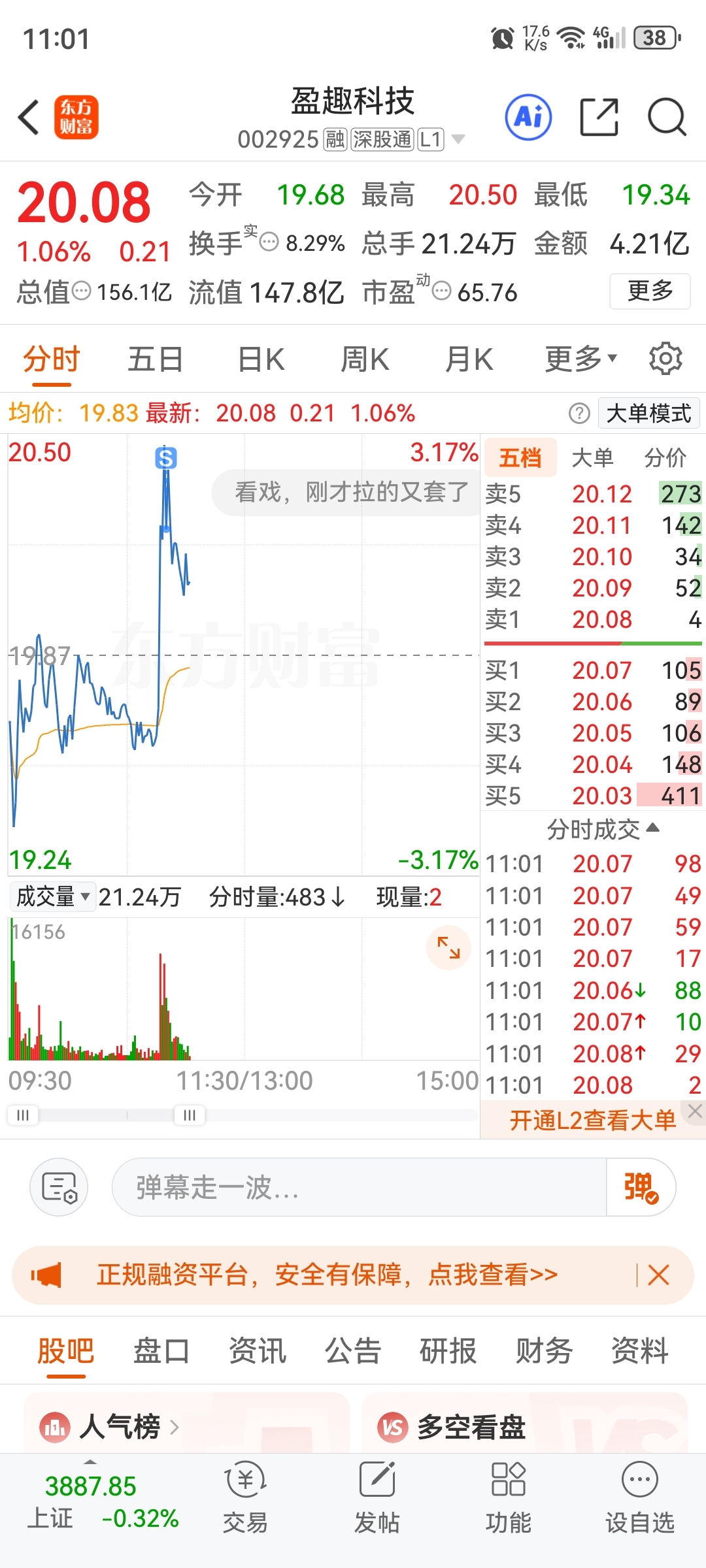 $盈趣科技(SZ002925)$ 卖了,下去再买