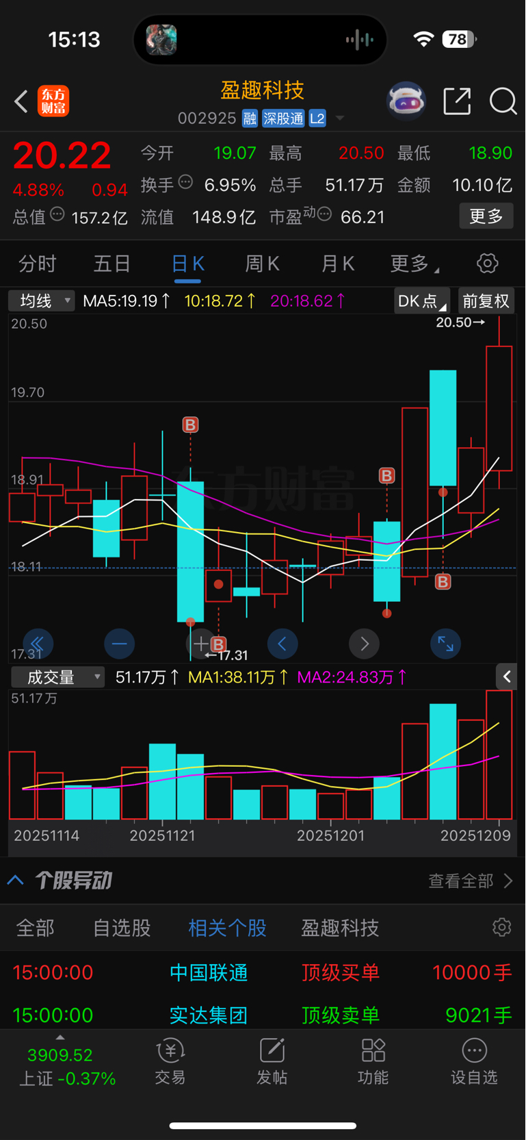 $盈趣科技(SZ002925)$ 前面赚了差不多20个点都没出以为他还可以涨 ,悔……