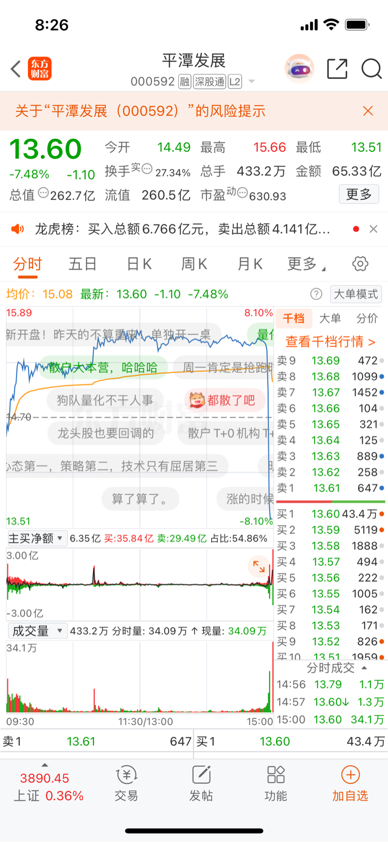 早上起点进平潭发展我都麻了这市场太魔幻了鱼尾巴真的不能吃,这量化比盈趣的主力有过