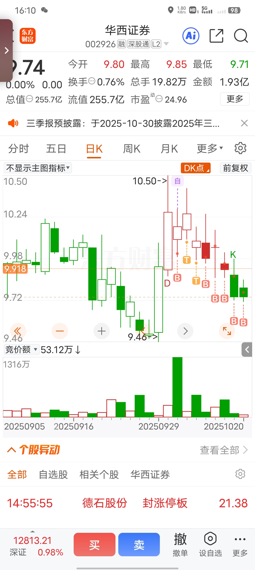 $华西证券(SZ002926)$ 又被我买到了,哈哈哈哈