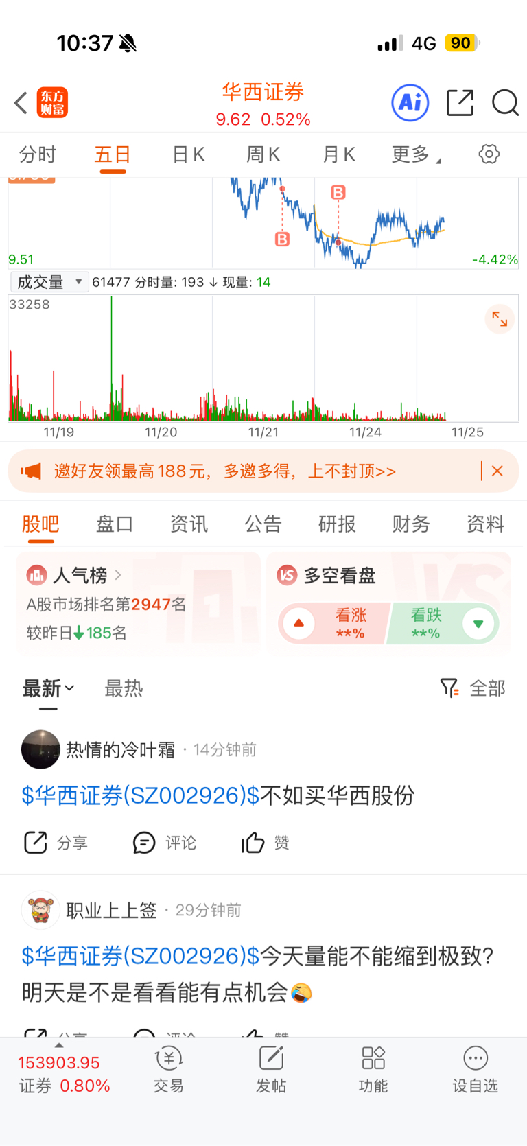 $华西证券(SZ002926)$ 拉一点让我走吧
