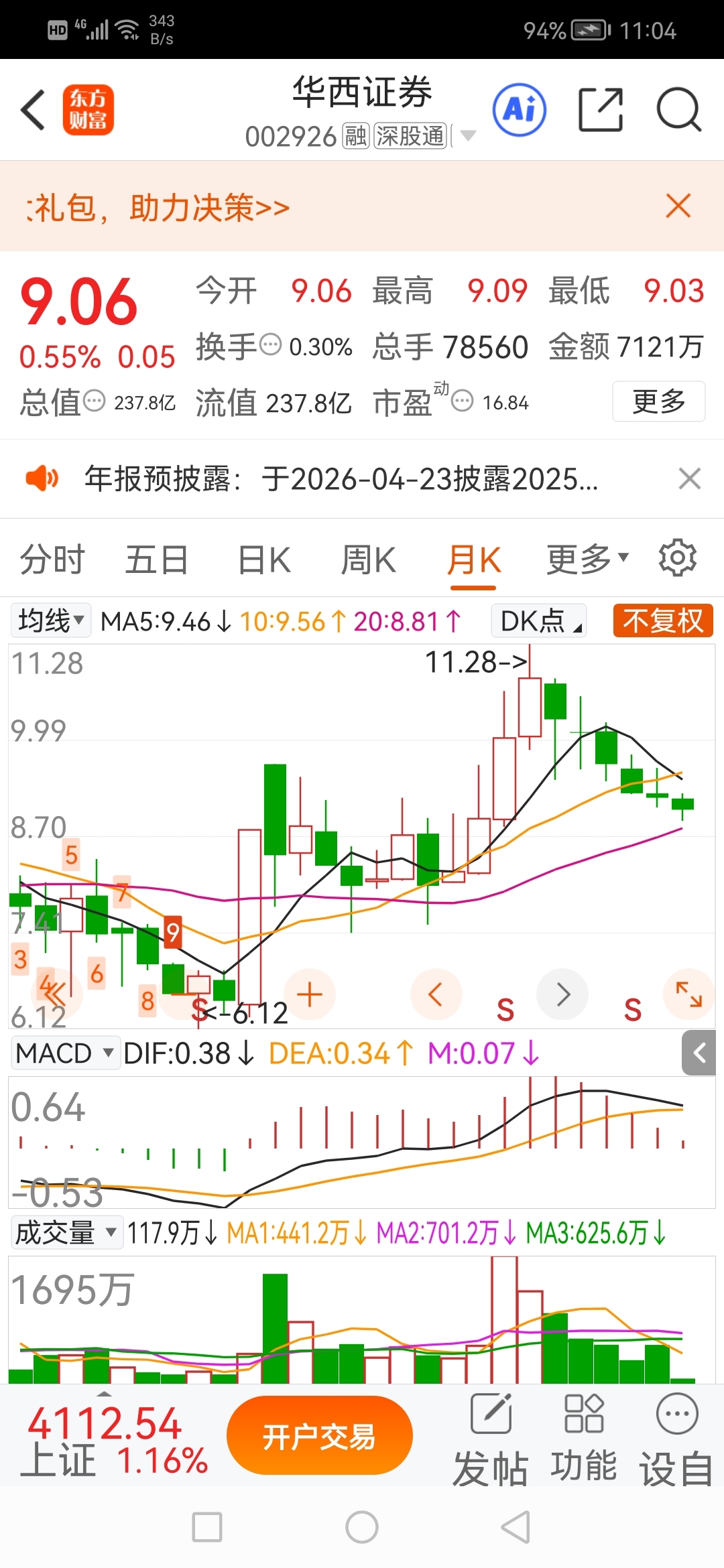 $华西证券(SZ002926)$ 拿好了,从月线看,本月就是再差,本月也得碰一下9.5元