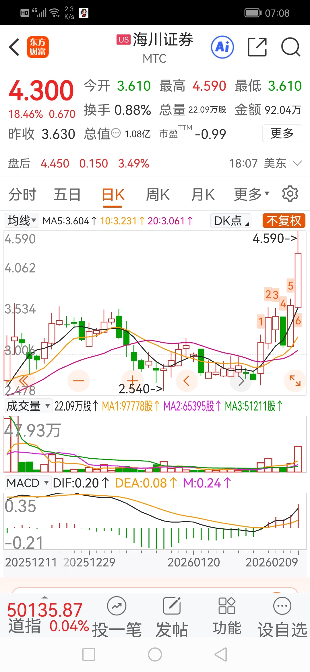 美股证券大涨,比如海川证券,昨天涨十八个点,今天又涨十八个的点