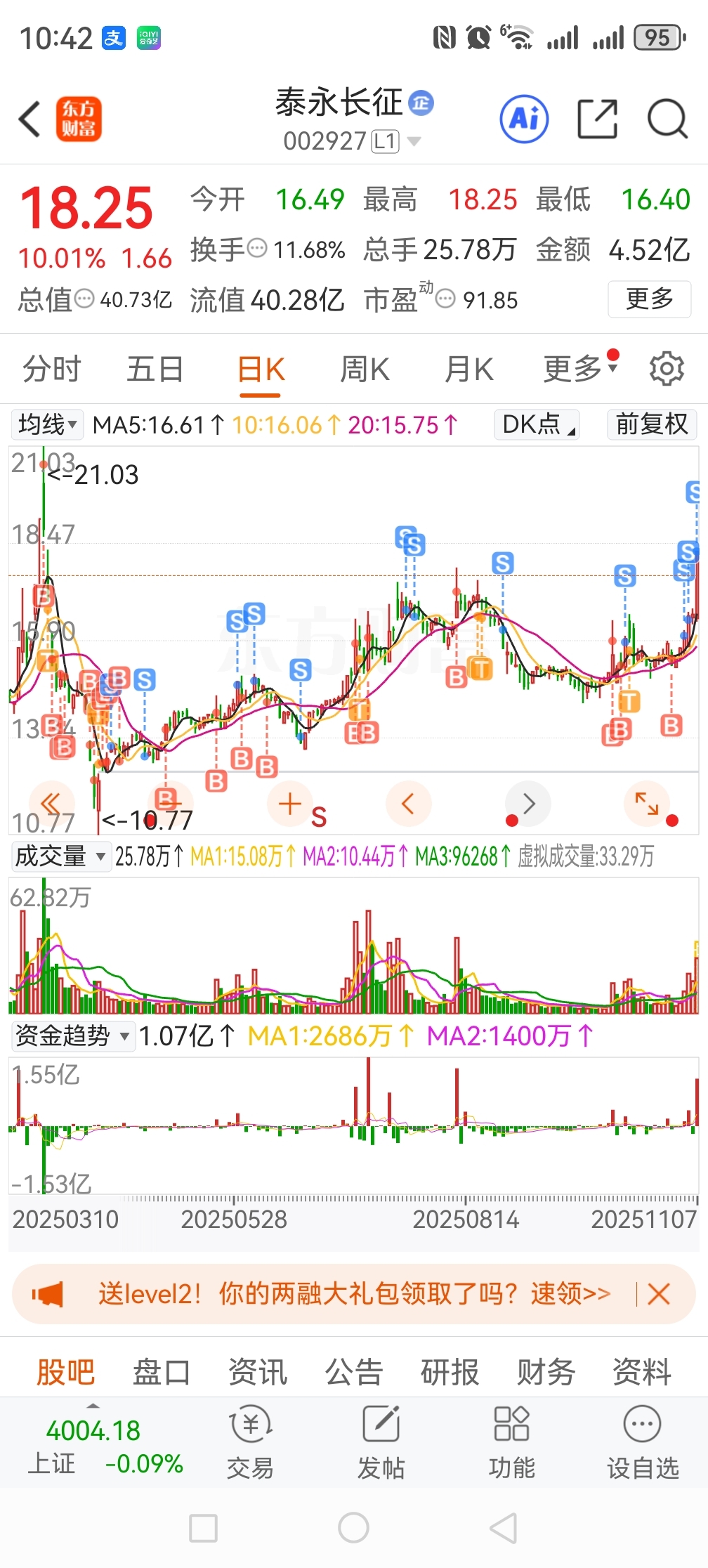 $泰永长征(SZ002927)$ 套在山顶,今天回本了
