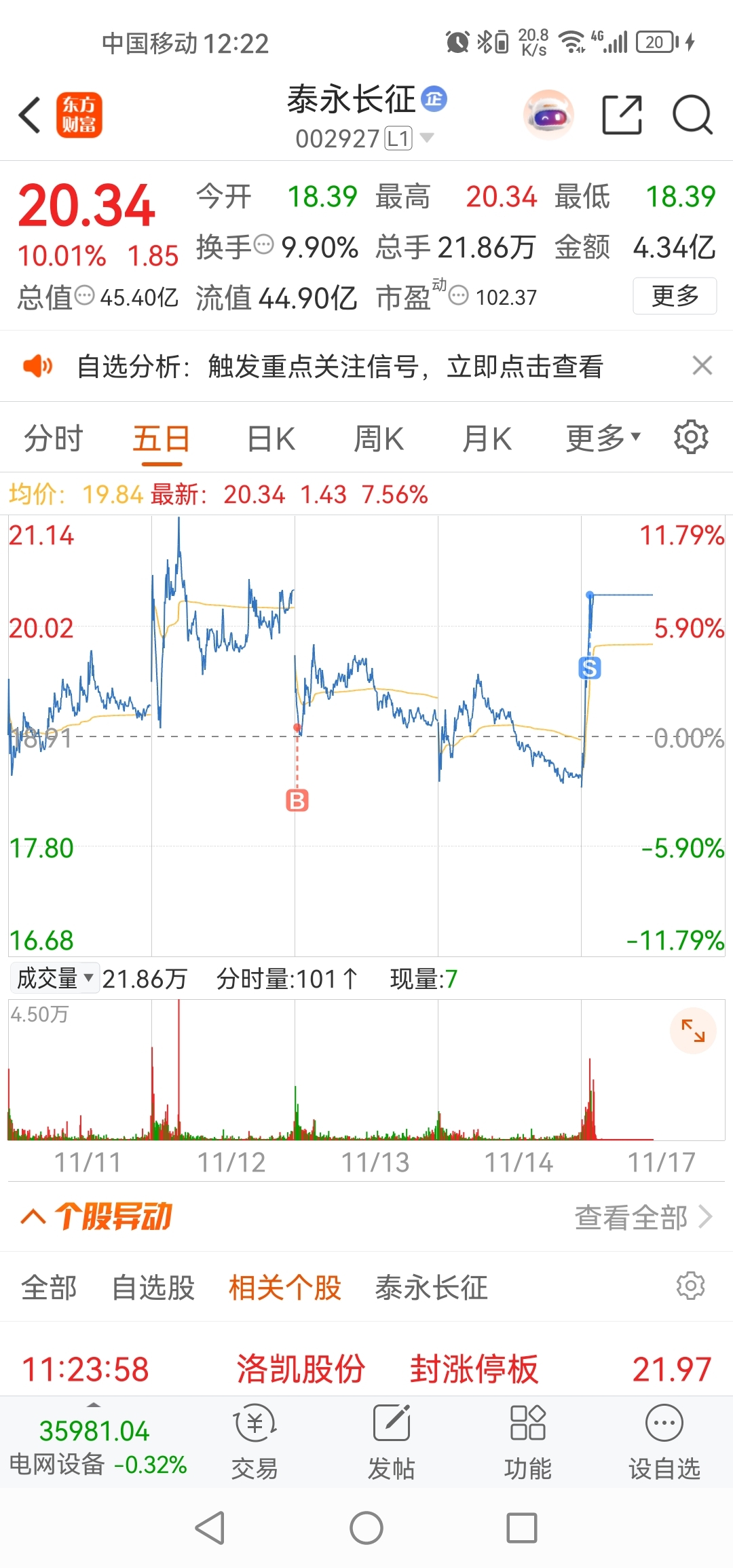 $泰永长征(SZ002927)$ 涨停板跑了,谢谢主力拉升,8个点收益到手,明天看情况再买