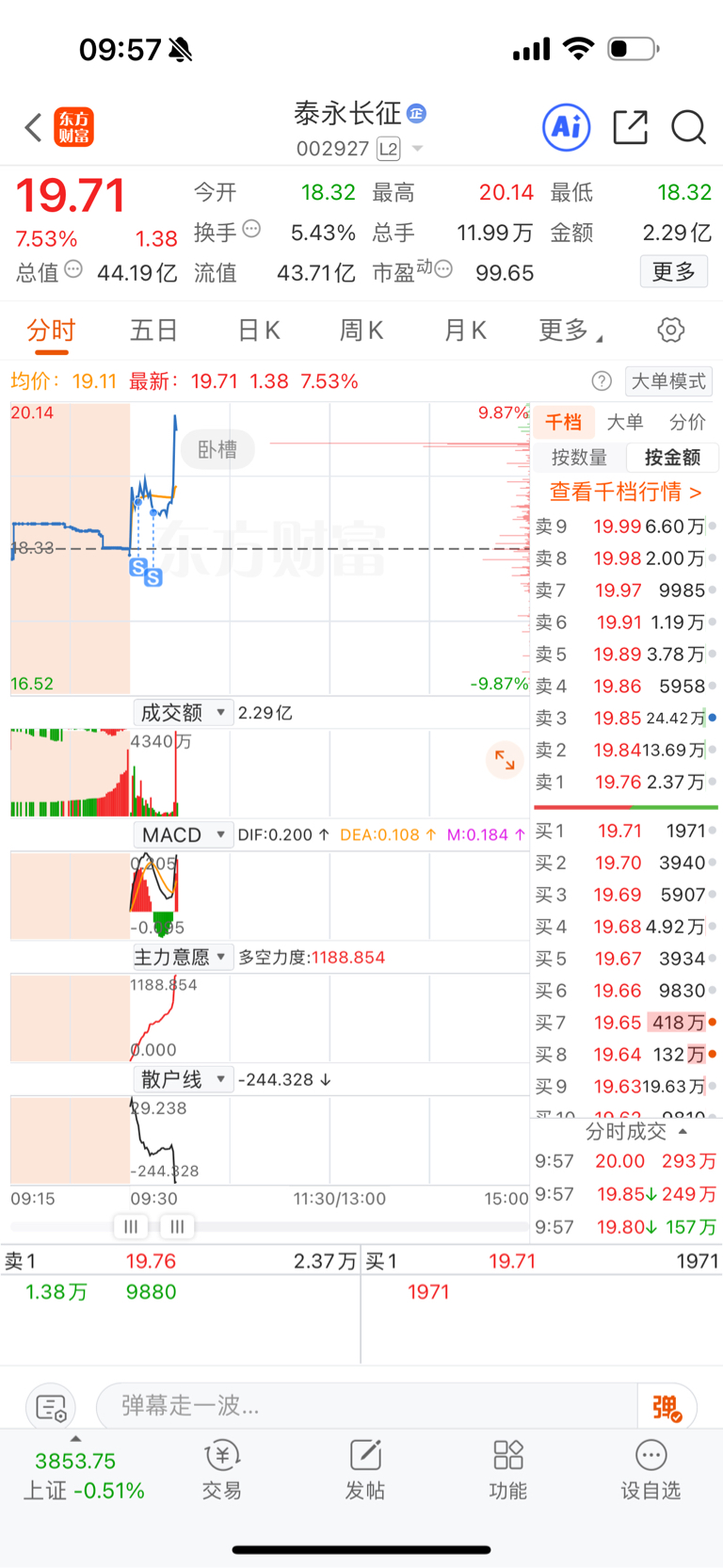 $泰永长征(SZ002927)$ 这股股性太差了,不适合一般人,割肉离场,涨停跟我无关