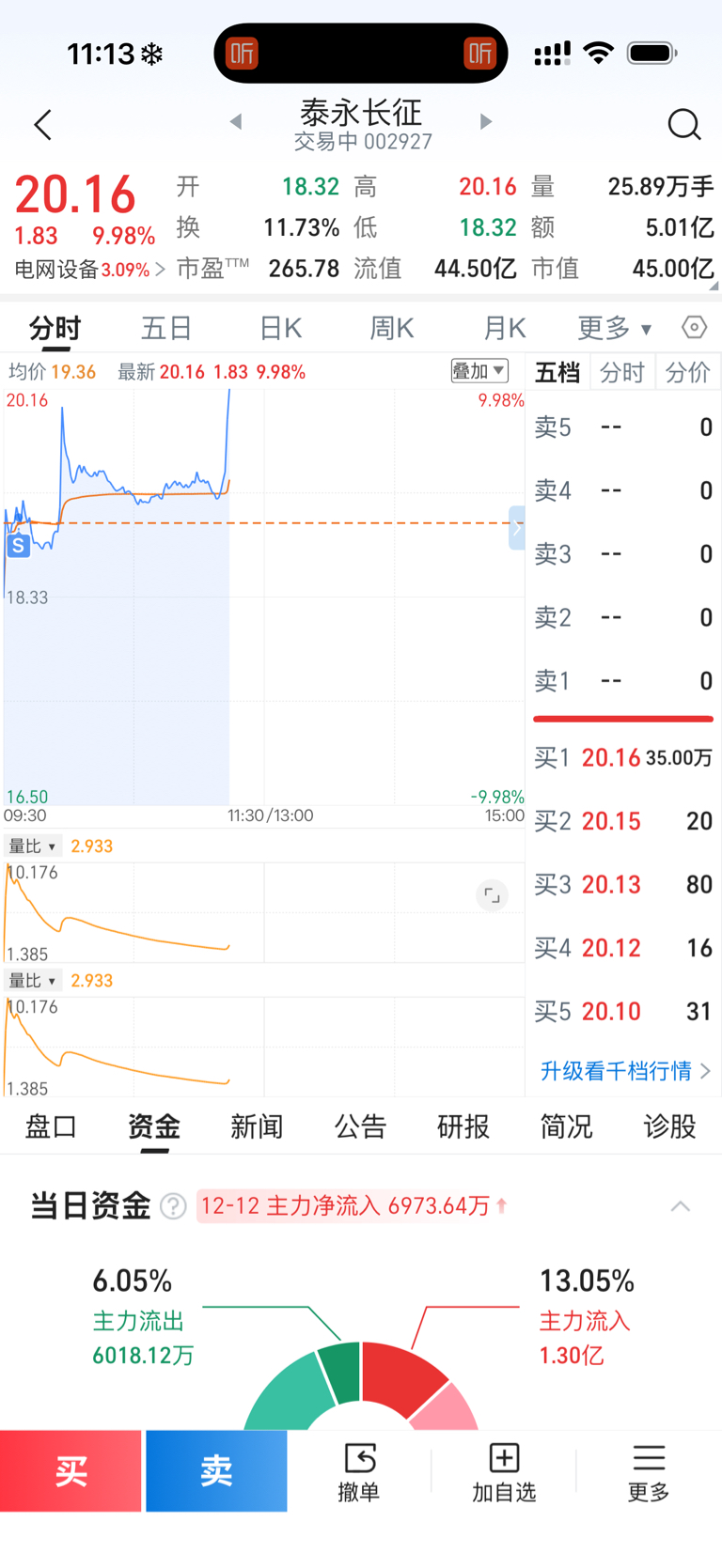 $泰永长征(SZ002927)$ 我赚了17块钱 谢谢主力不套我 下次还买你