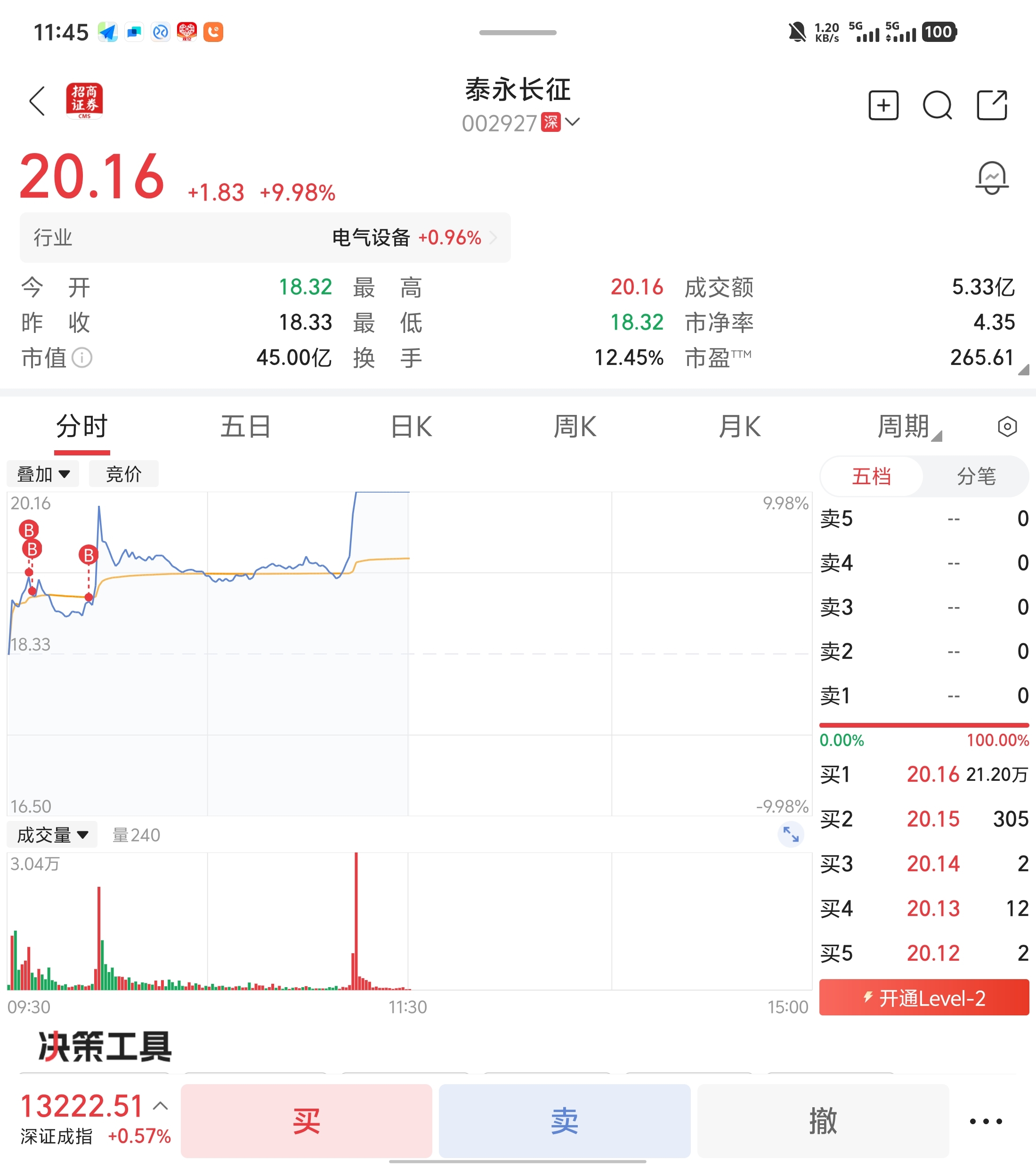 $泰永长征(SZ002927)$ 全仓怼进去了 早盘亏的都赚回来了