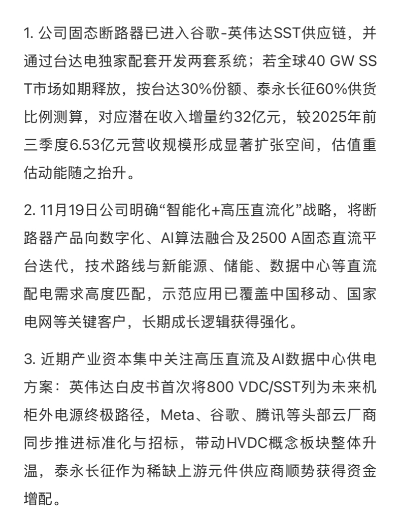 $泰永长征(SZ002927)$ 英伟达+谷歌概念