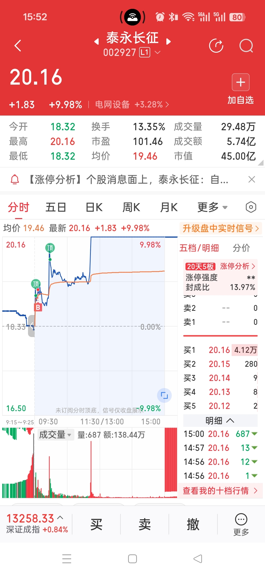 #收盘点评# 收盘了,可以开香槟了,今天主要还是运气好,套到利了,希望周一能带走利润,有机会还是要切到前排,中超控股,雪人集团。开盘中超太快了,而且情绪没完全确认修复前,小高开秒板很容易爆头,比如昨天的光电股份。今天选择它,主要是属于热门题材,周一首板后还有点市场记忆,所属板块里,它4天2板也算比较强的跟风票了。