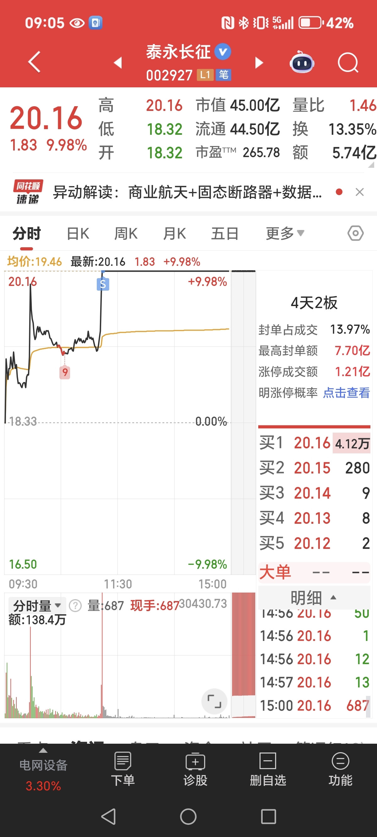 $泰永长征(SZ002927)$ 落袋为安了,择机再战