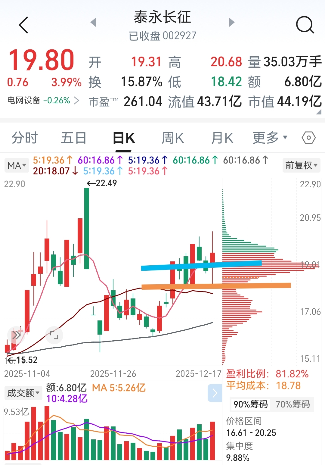 $泰永长征(SZ002927)$ 19.5建仓,19止损,5日线上持有,收盘有效跌破5日线出