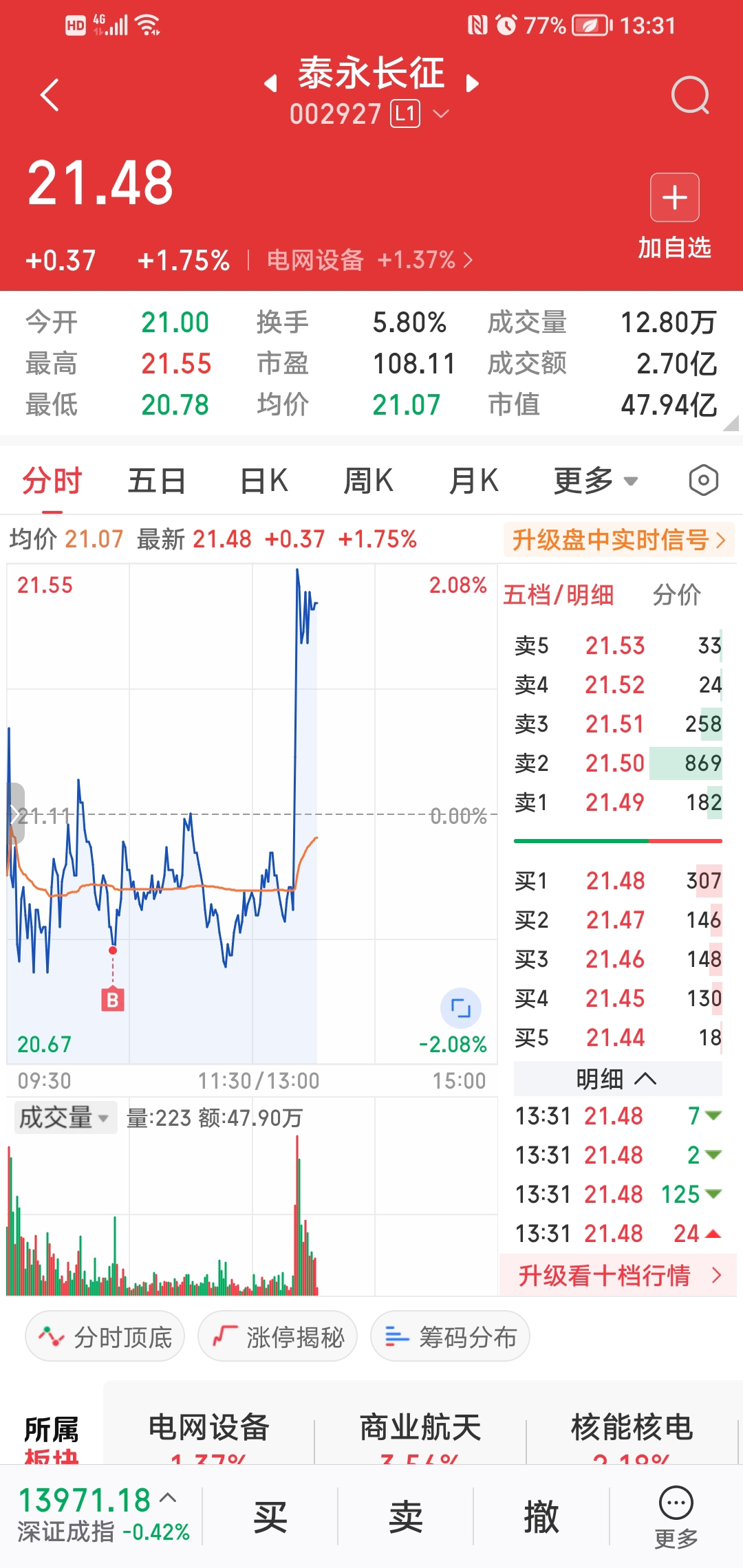 $泰永长征(SZ002927)$ 做下你隔夜嘛