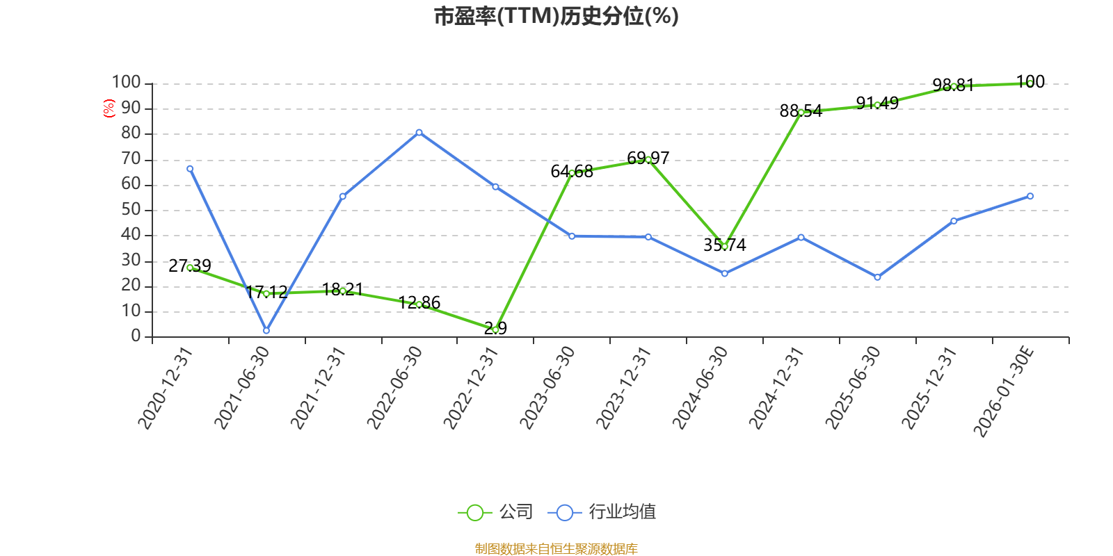 以本次披露业绩预告均值计算,公司近年市盈率(TTM)图如下所示: