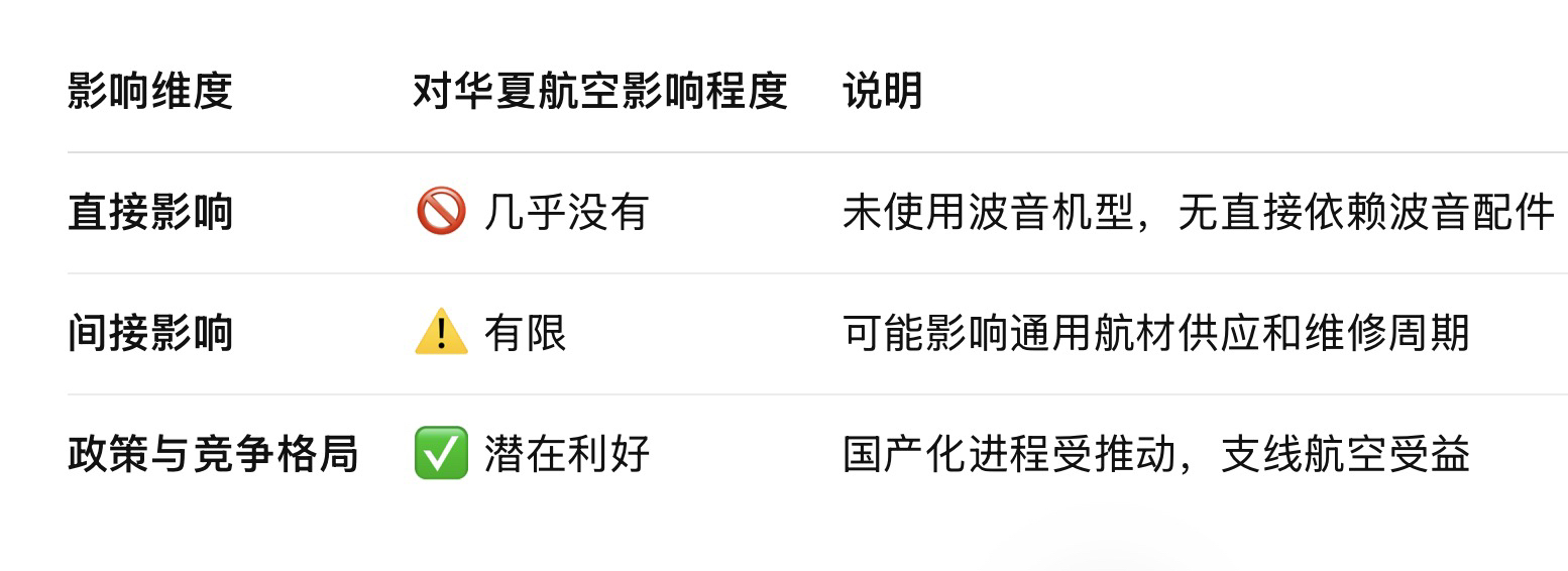 波音配件出口限制对华夏航空的实际运营影响极小甚至略偏正面。炮弹坑,请珍惜!!