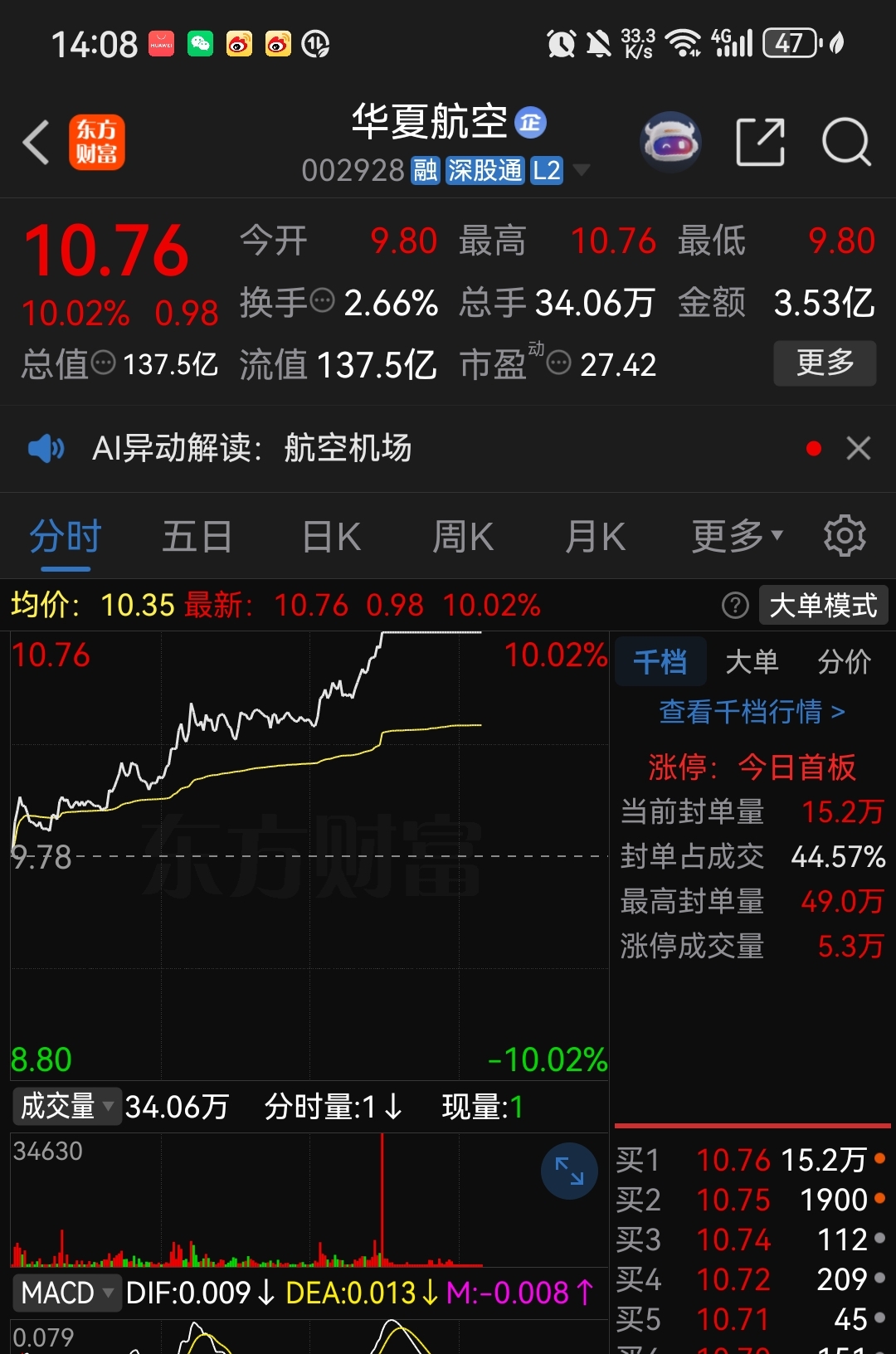 $华夏航空(SZ002928)$ 起飞,在奔新高