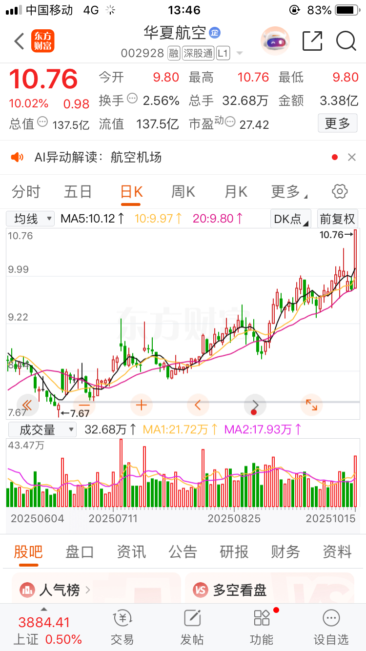 $华夏航空(SZ002928)$ 华夏,先锁定它,这趋势太顺了,不可能就这样飞的,盯住它,明后天震仓,5天以后再做决定。