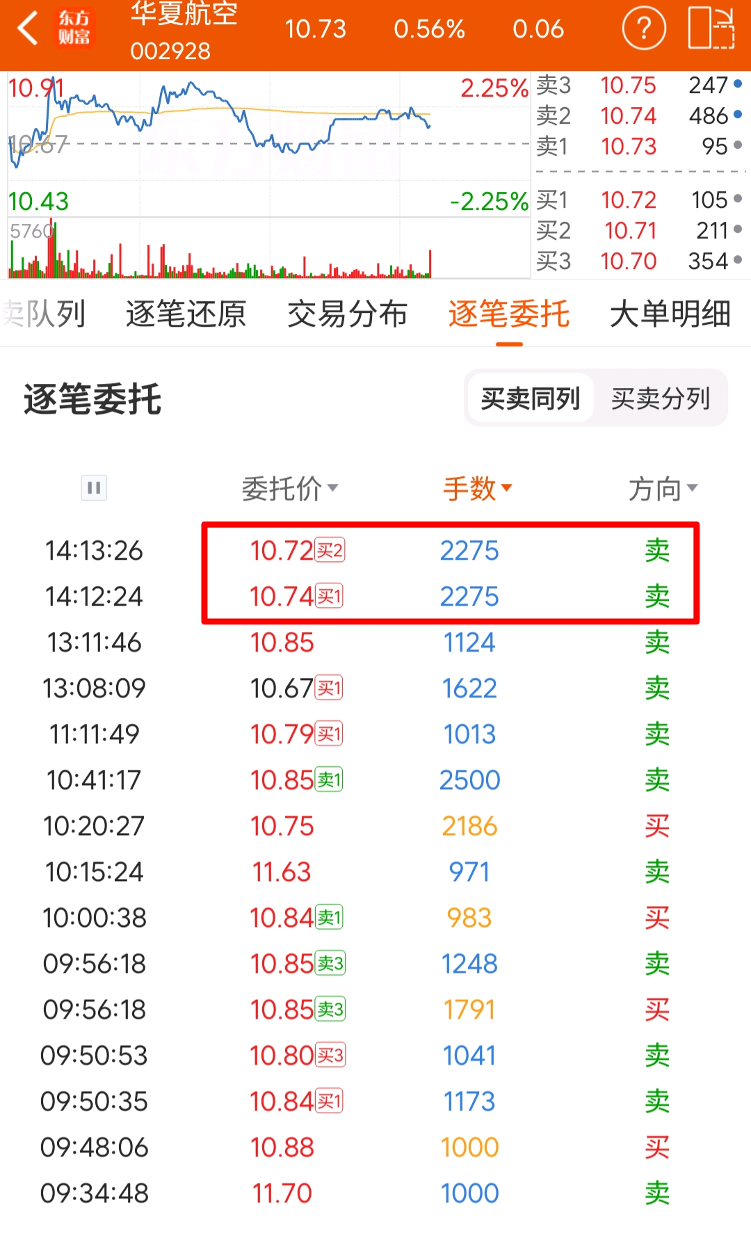 $华夏航空(SZ002928)$ 不知道是哪个水货,砸盘砸在74没人成交,急不可耐改成72砸出去了