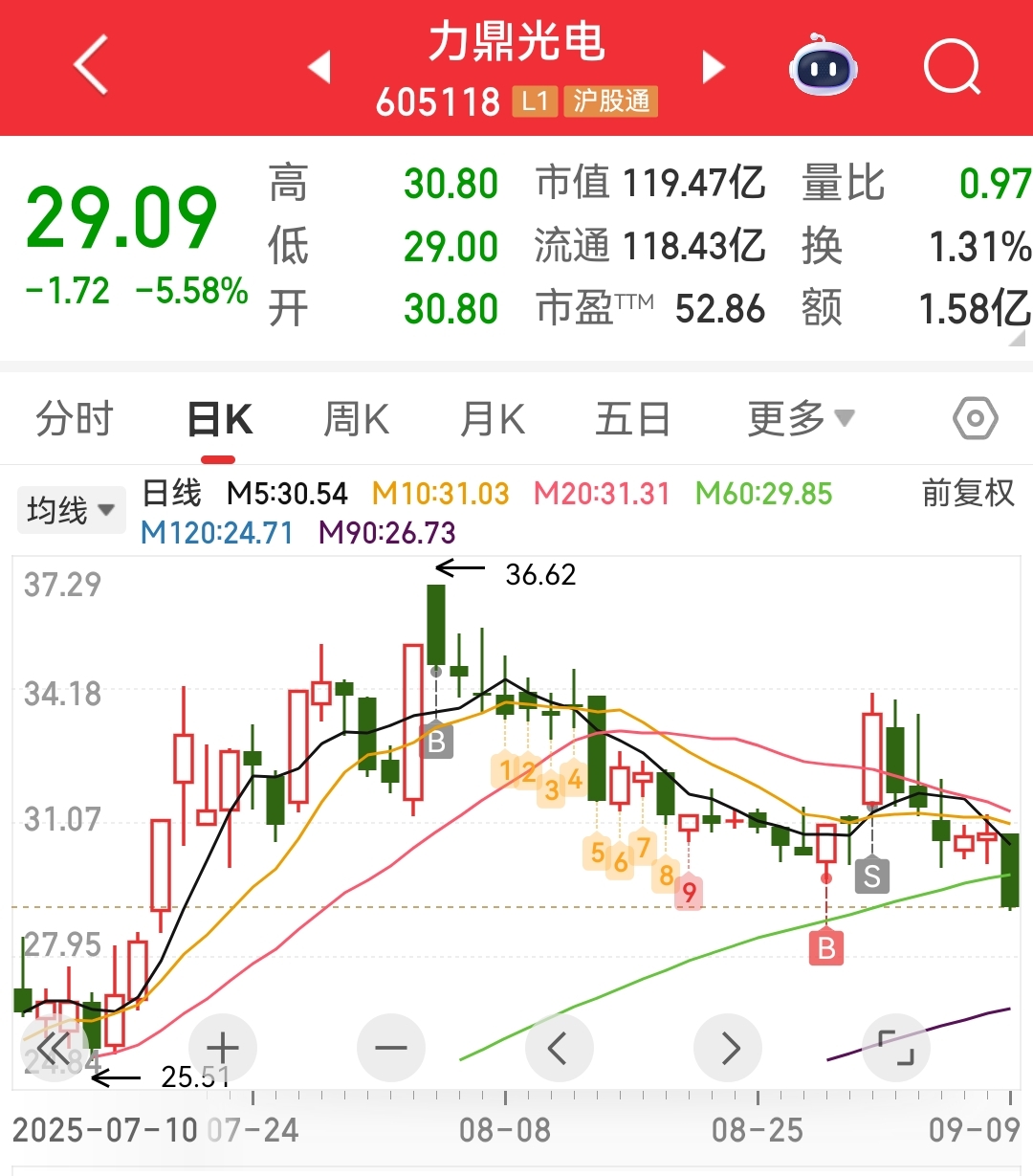 已加仓,总体仓位40%