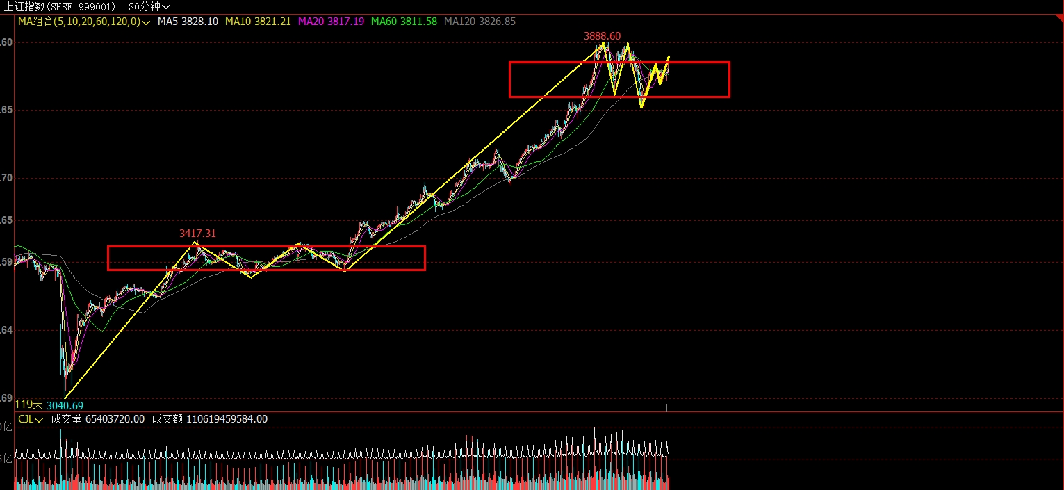大盘30分钟级别三买正式确立,就是3732.84...这里是新的开始还是行情的末端呢?不管是突破前高继续向上还是宽幅震荡,只要不有效跌破3732.84,行情就都还没有结束