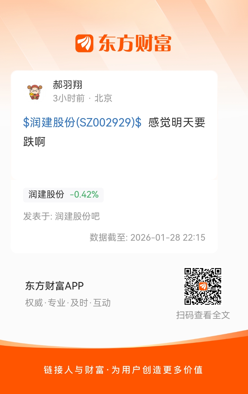 温馨提示: 1.根据《证券法》规定,禁止编造、传播虚假信息或者误导性信息,扰乱证券市场;2.用户在本社区发表的所有资料、言论等仅代表个人观点,与本网站立场无关,不对您构成任何投资建议。用户应基于自己的独立判断,自行决定证券投资并承担相应风险。《东方财富社区管理规定》