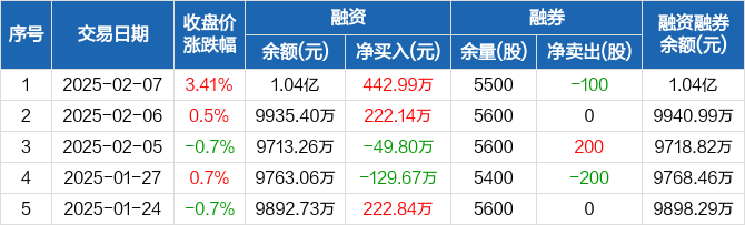 宏川智慧:融资净买入442.99万元,融资余额1.04亿元(02-07)