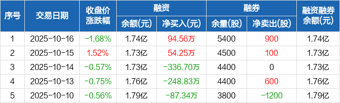 宏川智慧:融资净买入94.56万元,融资余额1.74亿元(10-16)