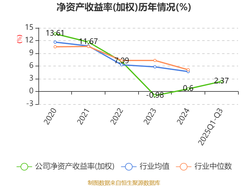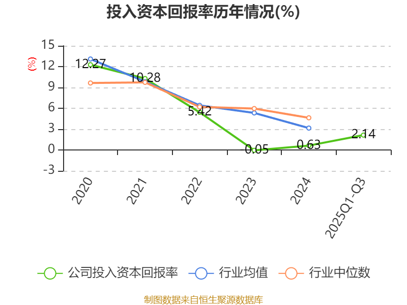 盈利能力方面, 2025年前三季度公司加权平均净资产收益率为2.37%,同比上升2.22个百分点。公司2025年前三季度投入资本回报率为2.14%,较上年同期上升1.89个百分点。