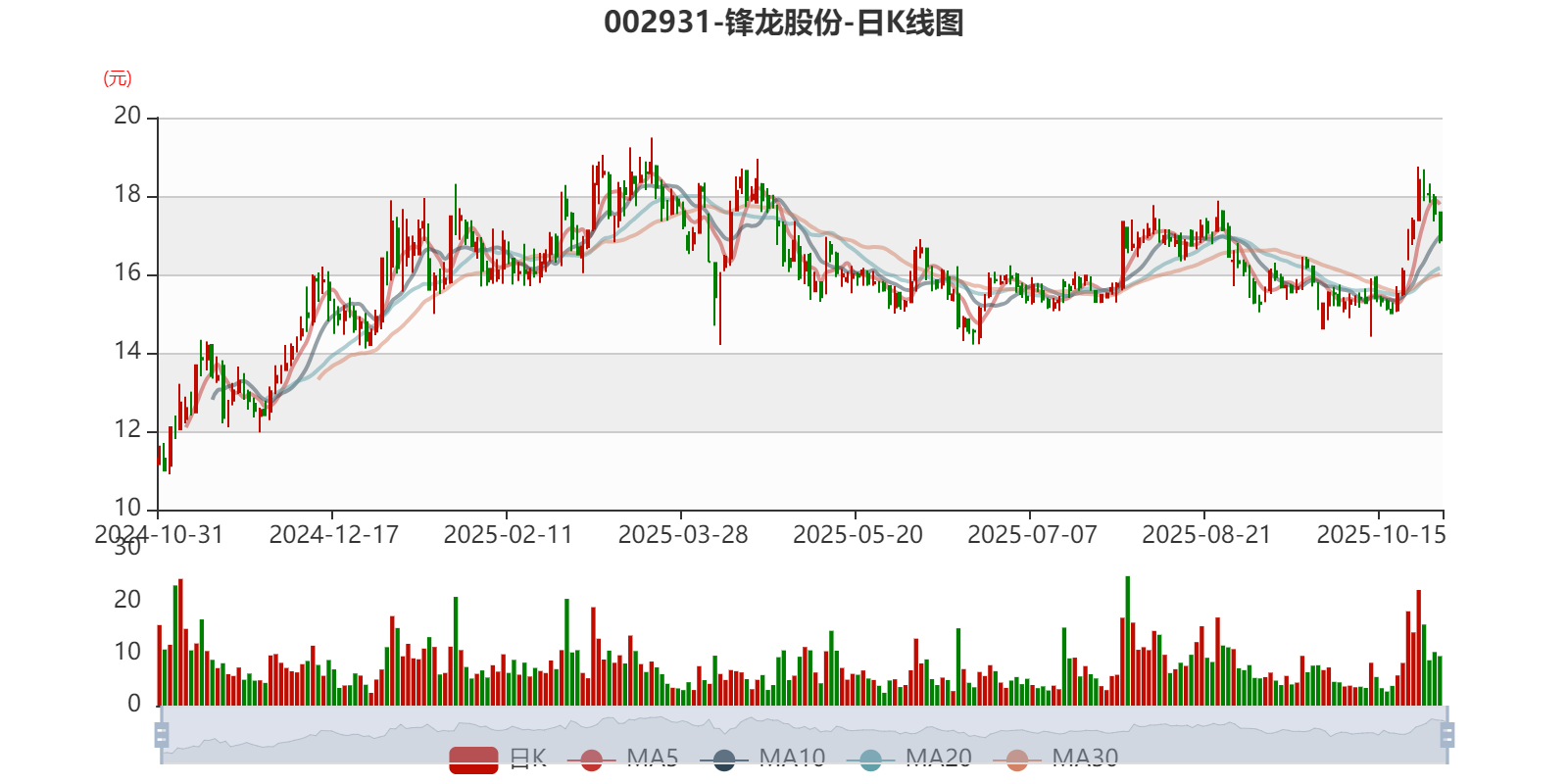 中证智能财讯锋龙股份(002931)10月31日披露2025年第三季度报告。前三季度公司实现营业总收入3.73亿元,同比增长9.47%;归母净利润2151.85万元,同比增长1714.99%;扣非净利润1918.14万元,同比增长2900.07%;经营活动产生的现金流量净额为2322.44万元,同比增长89.35%;报告期内,锋龙股份基本每股收益为0.1元,加权平均净资产收益率为2.37%。