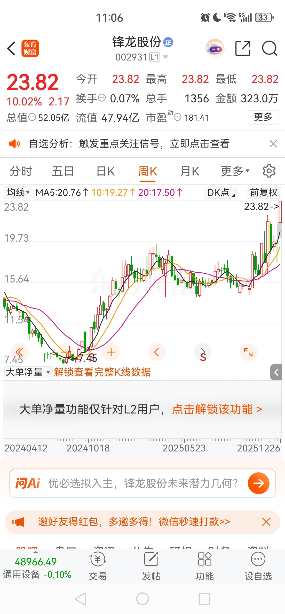 $锋龙股份(SZ002931)$ 已经从7块钱翻了3倍了,你还想涨多少?