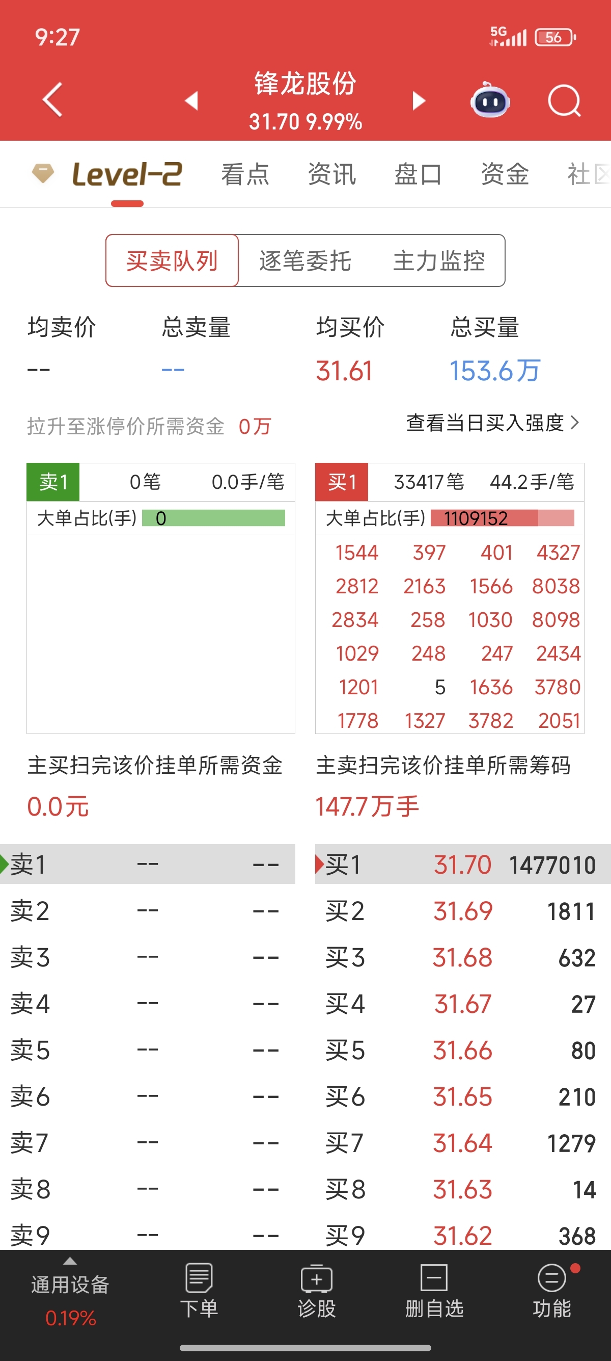 今天的这个5手是散户的光,下午我也再看他排进去了没