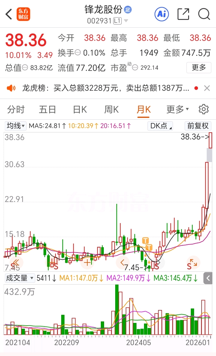 $锋龙股份(SZ002931)$ 没拿住哎