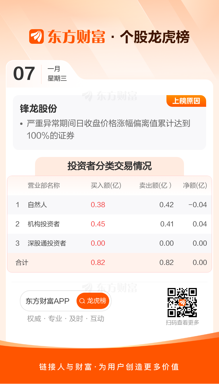 锋龙股份(002931)龙虎榜数据(01-07)