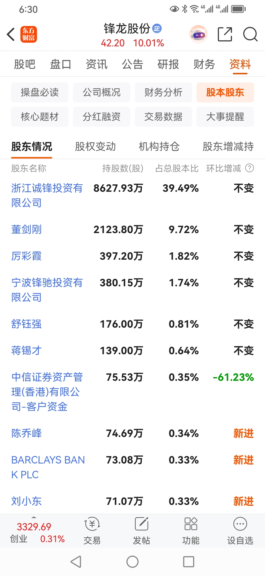 顶级游资军哥:分析浙江绍兴锋龙股份002931,股东,涨停板逻辑