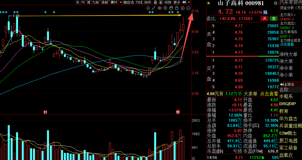 今天早盘竞价低开后就在水下震荡整理,全天走出连洗带拉的节奏。早盘那波水下磨盘,估计把不少拿不住的朋友都洗出去了。盘前就反复跟大家强调,这波行情根本没结束,果不其然午后一度放量冲高到前高附近,只可惜这里抛压太大,伴随分歧出现股价有所回落,不过最终还是稳稳吃到一口小肉。算下来从跟上到现在,近30个点的大肉已经稳稳攥在手里,海哥依旧看好它后续突破前高的表现,耐心拿稳就好。