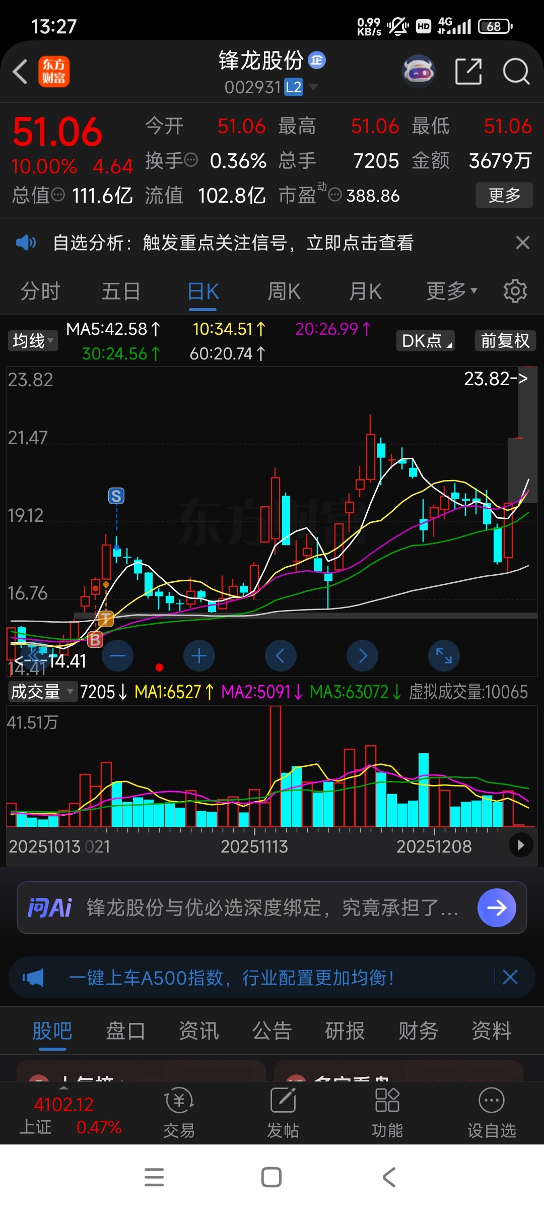 $锋龙股份(SZ002931)$ 当时第一轮就给我洗出来了