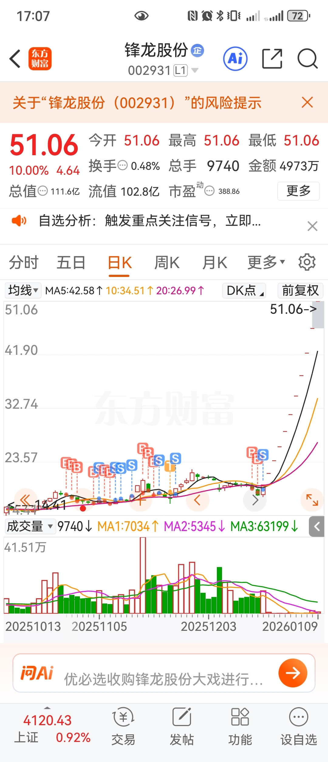 $锋龙股份(SZ002931)$ 倒在黎明前!
