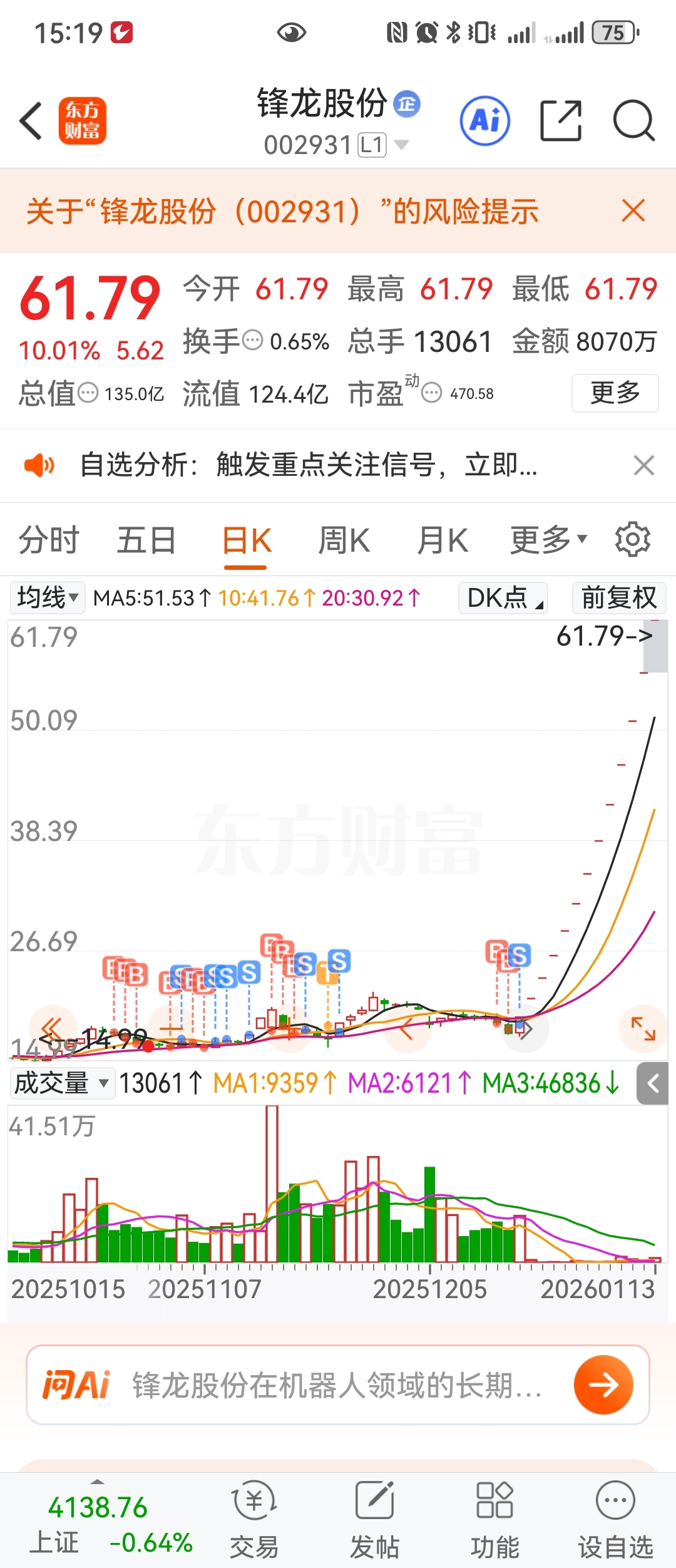 $锋龙股份(SZ002931)$ 倒在黎明前,每天看你一字板,拍断大腿