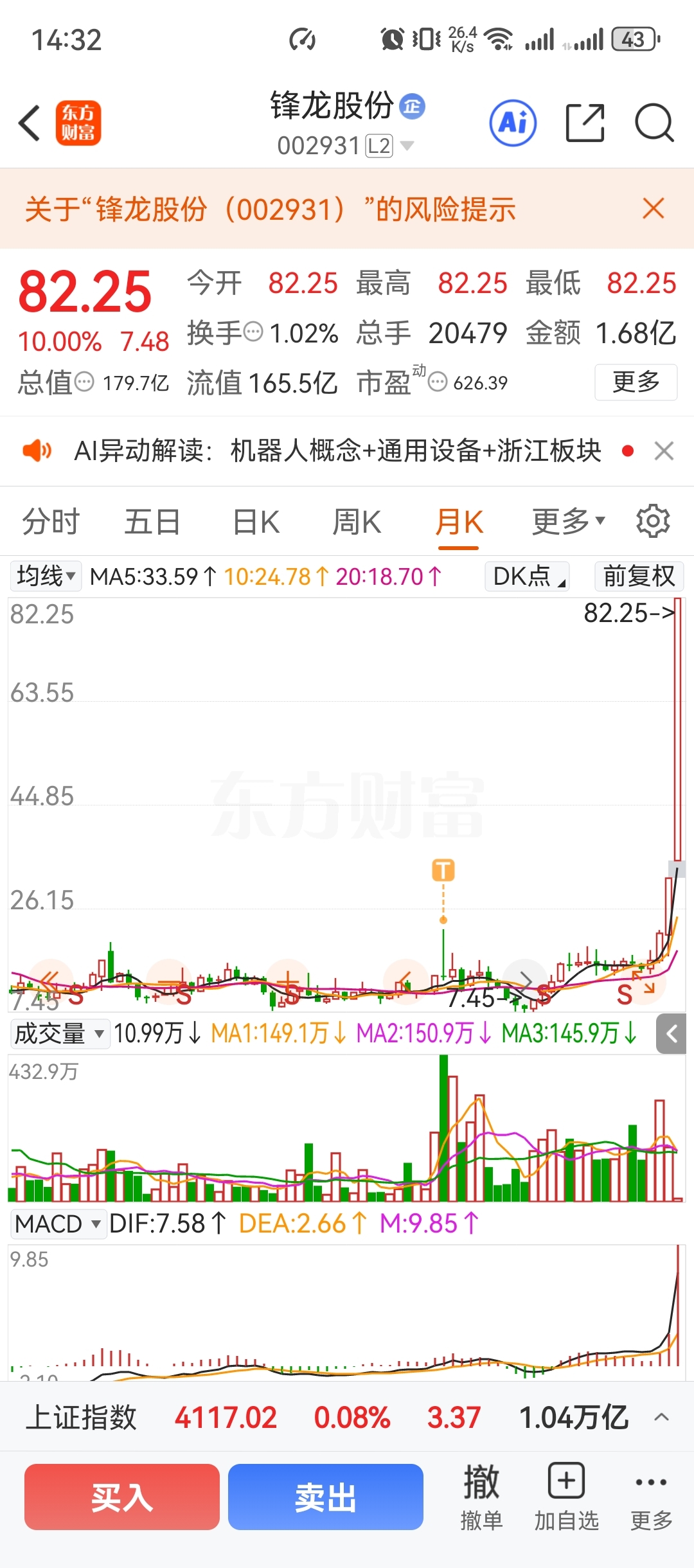 $锋龙股份(SZ002931)$ 发财了