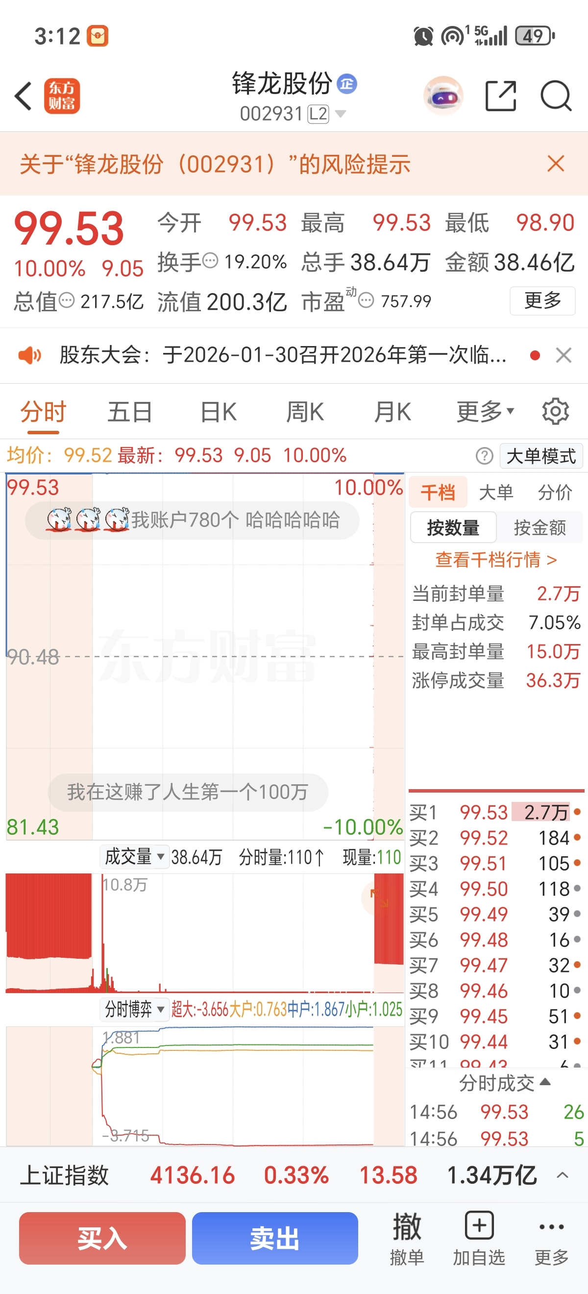 $锋龙股份(SZ002931)$ 恐怕要走地板模式了
