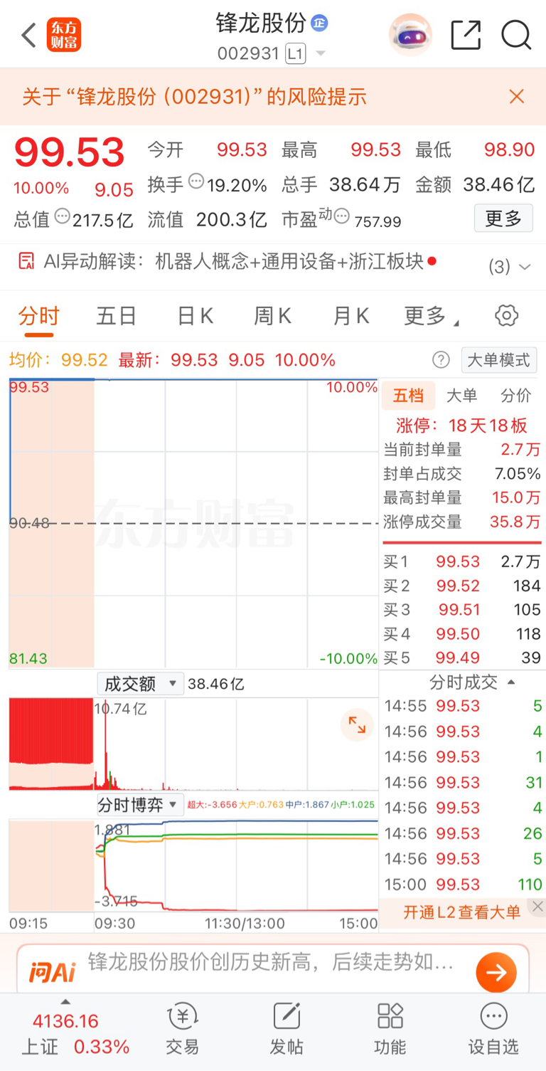 $锋龙股份(SZ002931)$ 今天成交38.5亿,真牛!