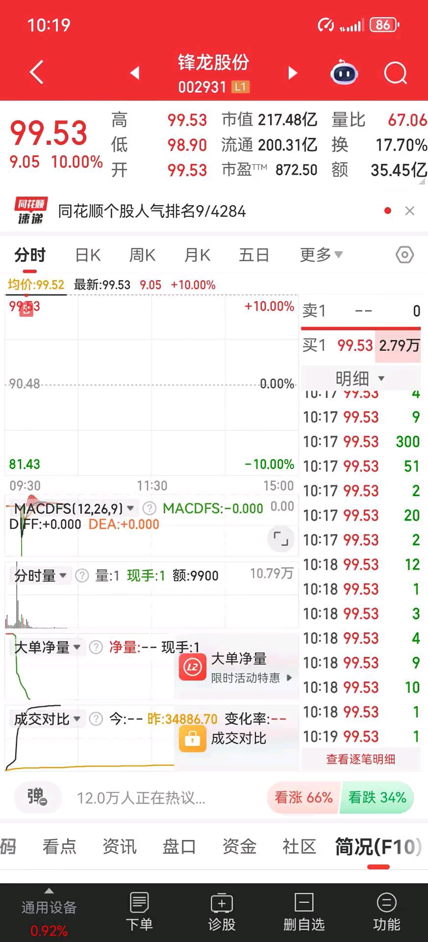 $锋龙股份(SZ002931)$ 在吃二十个点也上再走。跨年妖股。看到20板也上