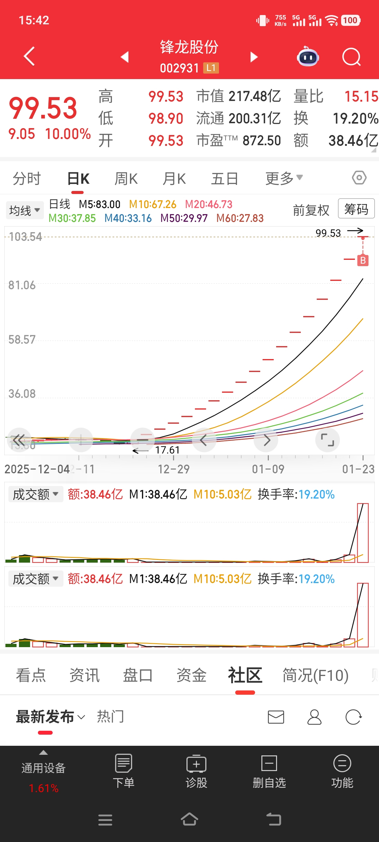 $锋龙股份(SZ002931)$ 基因:题材初期强势股第一次分歧,公告利好连续一字。买入方法:首次开板,第一次放量分歧,形态上是实体板,T板都可以。当天先参与部分仓位,要个先手,也就是俗话说的主动买套,占个位置。当天最好能翻红,冲的越高越好,回落红盘收最佳。第二天不破新低最佳,可加仓,或者盘中有承接,翻红时跟着加仓,或者形态确定尾盘加仓。做不做T具体盘中看情况,看个人能力。第三天持仓或者满仓的标准,就是开盘不能开在第一天的涨停价以下,或者盘中创两天的新低,那都是弱了,随时准备跑路了,第三天进本就是低开快速翻红上板,不可能给你低位筹码的机会了。第三天的能用的战法就是老师普及的弱转强,分歧转一致。注意要点:不要太过主观,第一,第二天仓位打的太重,第三天走弱了要及时走,不要盲目加仓