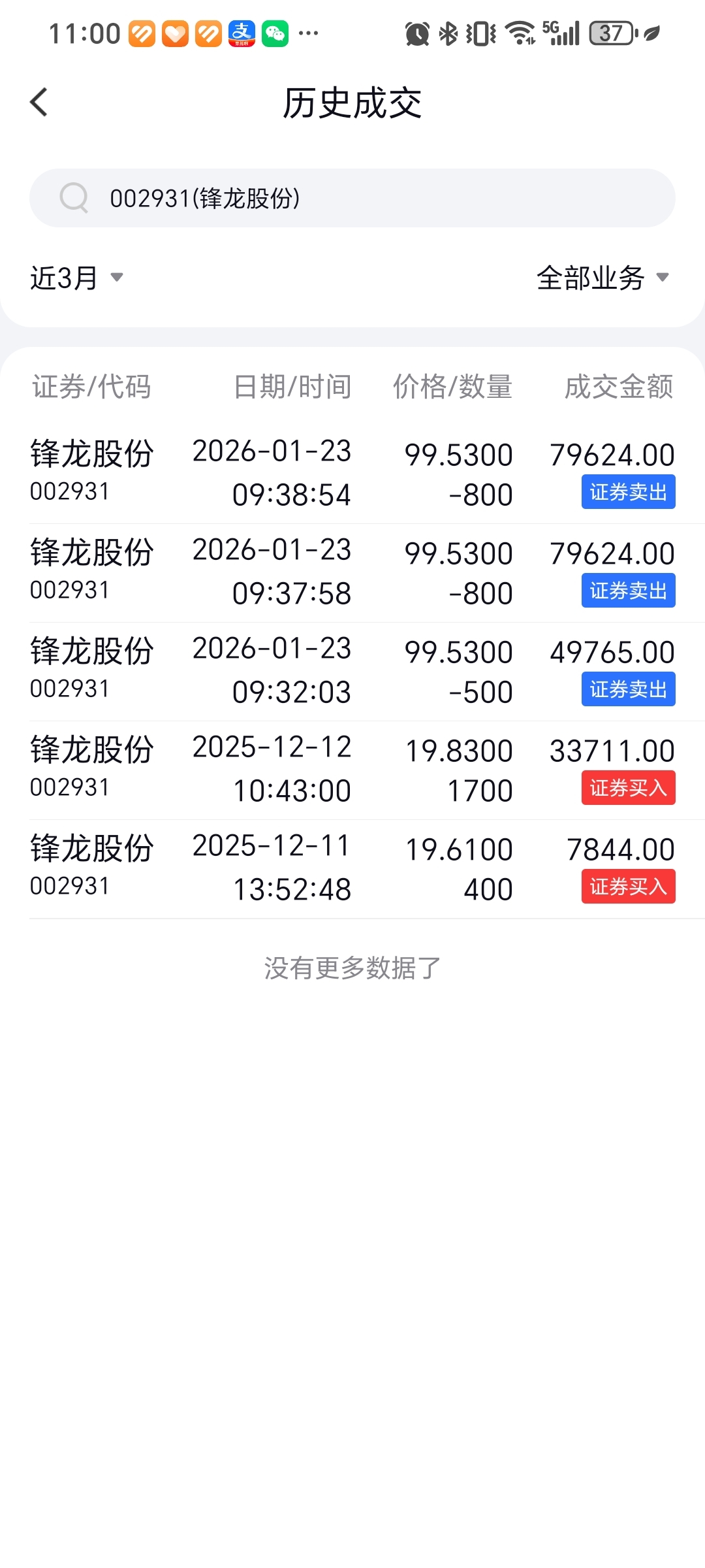 $锋龙股份(SZ002931)$ 还好不贪心,周五卖了
